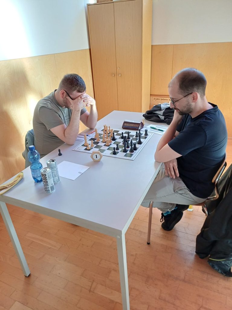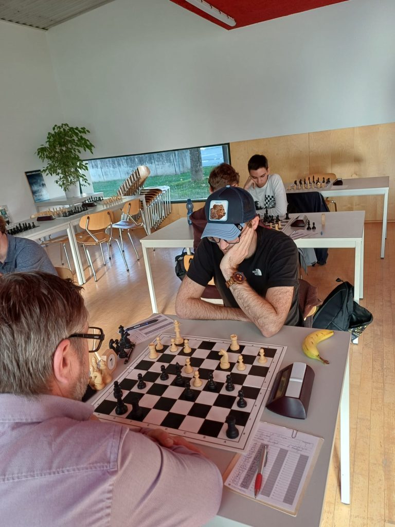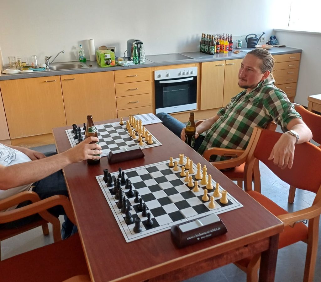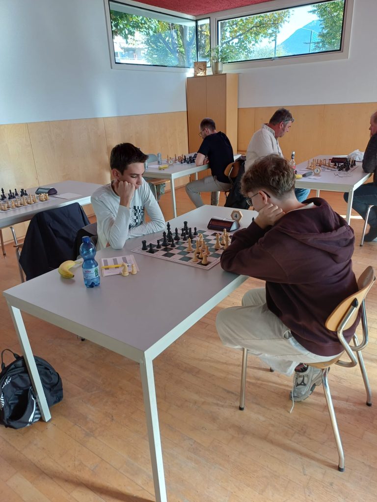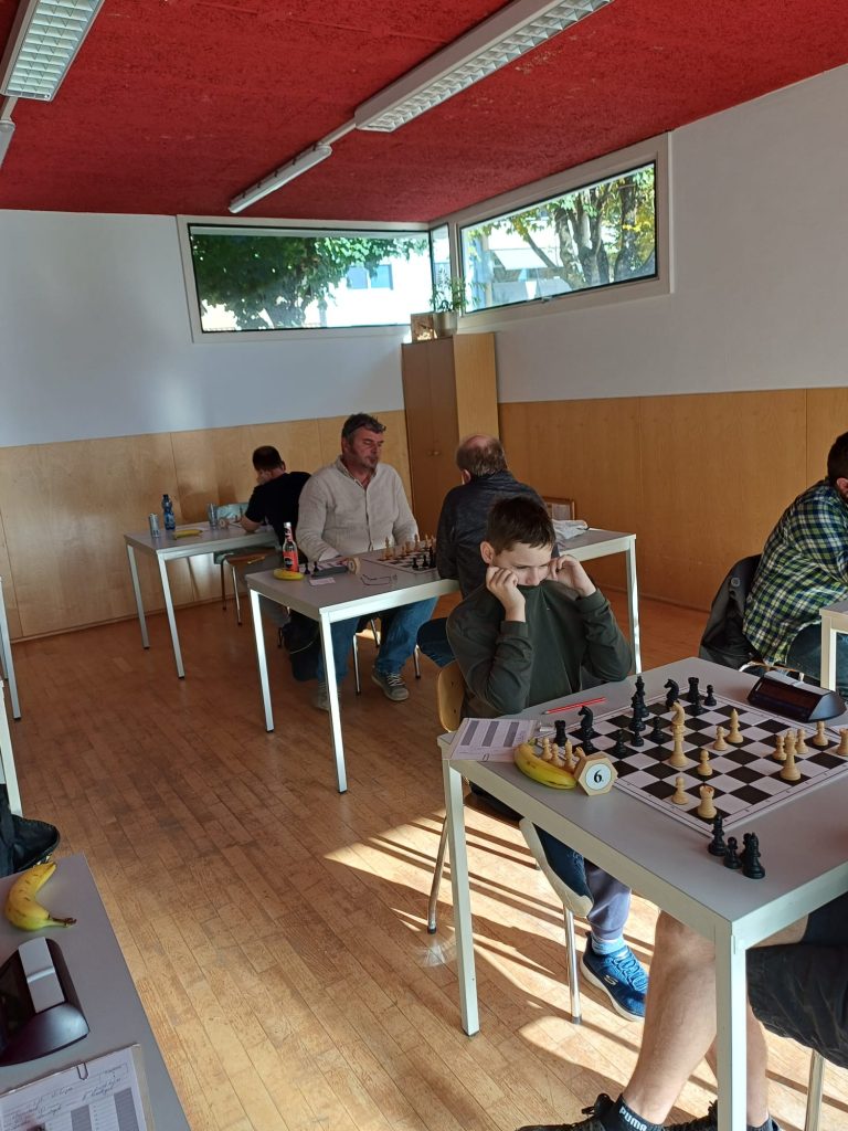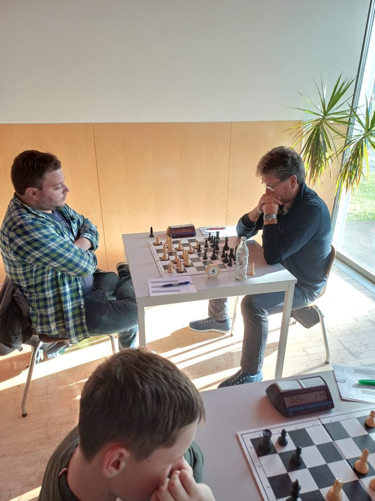 während Emil Vergeiner gegen Roman Baurecht mit einer Mehrfigur gegen drei Bauern und Läuferpaar sein Glück versuchte, doch der Dominanz der gegnerischen Figuren auf Dauer Tribut zollen musste.