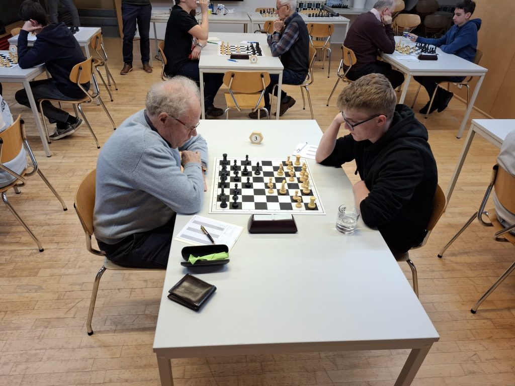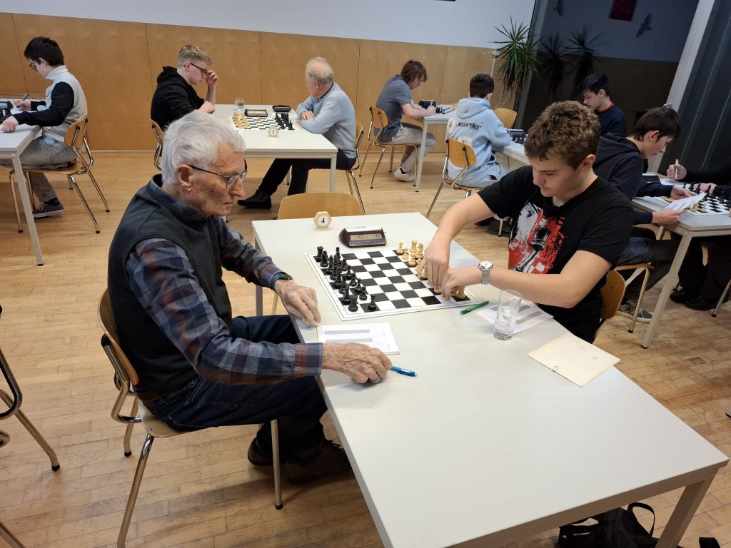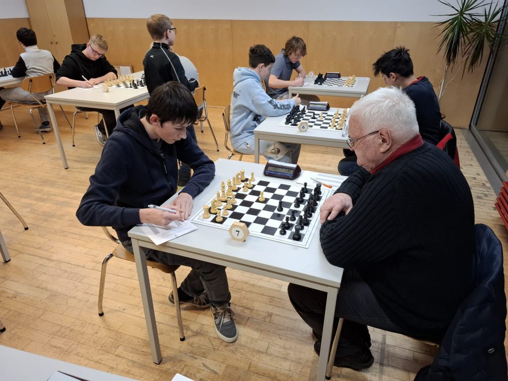 Extrem wechselhaft war auch der Verlauf der Partie zwischen dem Volksschüler Konstantin Stadler und dem Pensionisten Arnold Zauner. Zauner, mit großem Materialvorteil aus der Eröffnung herausgekommen, unterschätzte in der Folge Konstantins Drohungen und musste am Ende gar die Segel streichen.