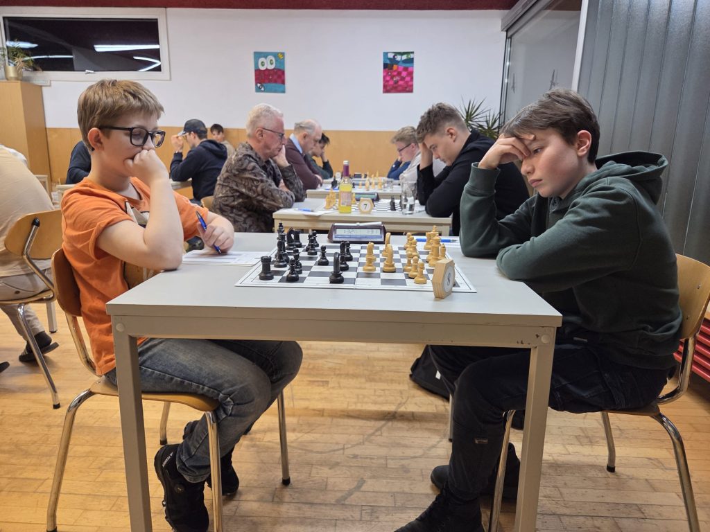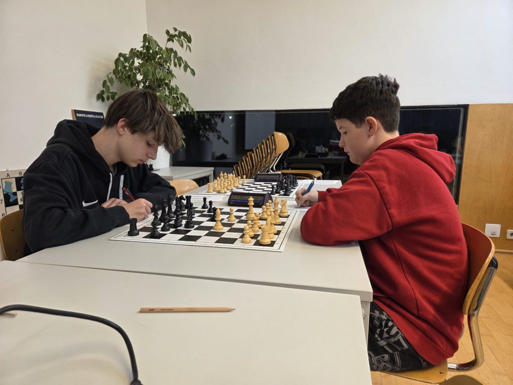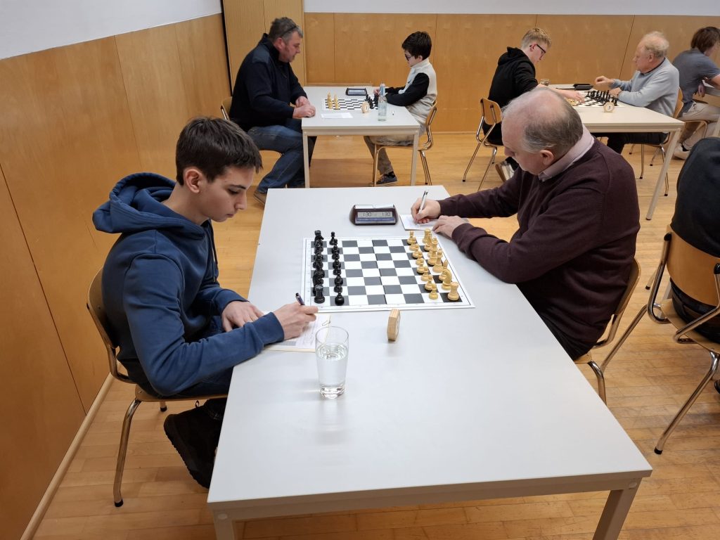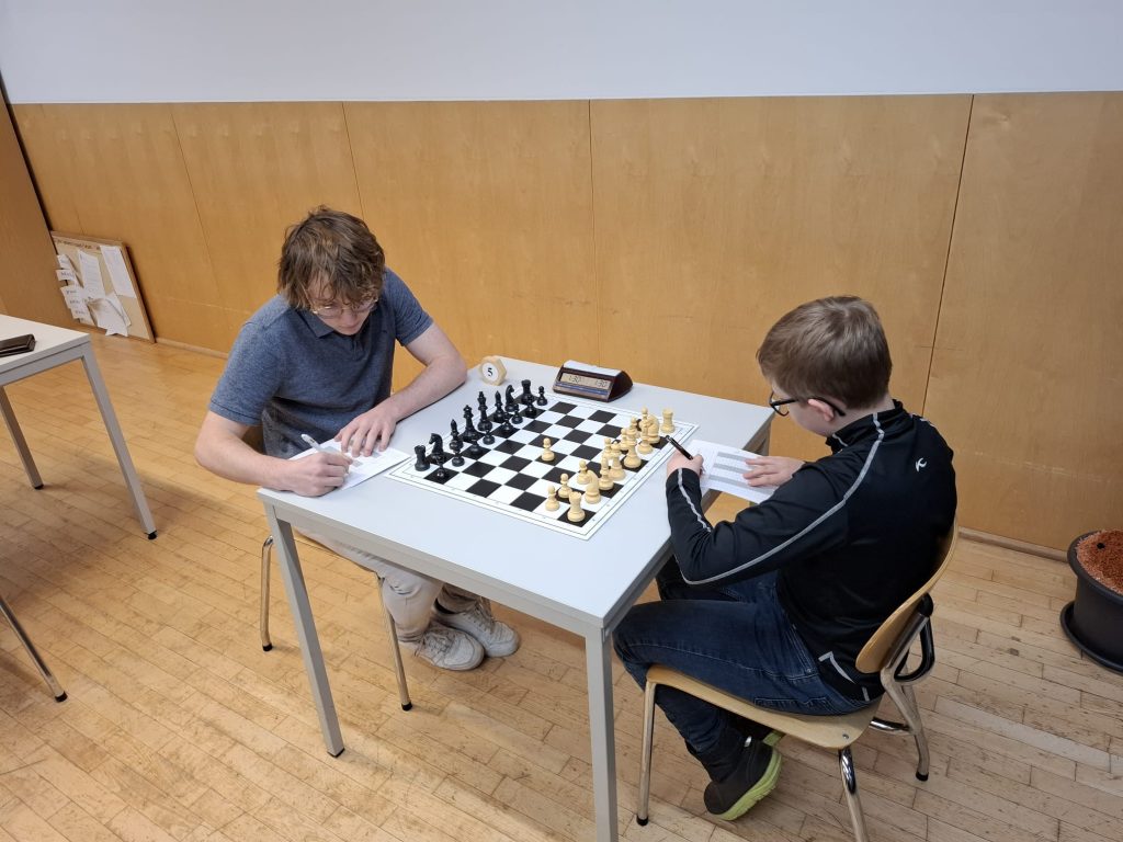 Die zeitmäßig längste Partie der dritten Runde spielten Peter Ranacher und Noah Gasser. Zum Schluss setzte sich das ruhige und konzentrierte Spiel Ranachers durch.