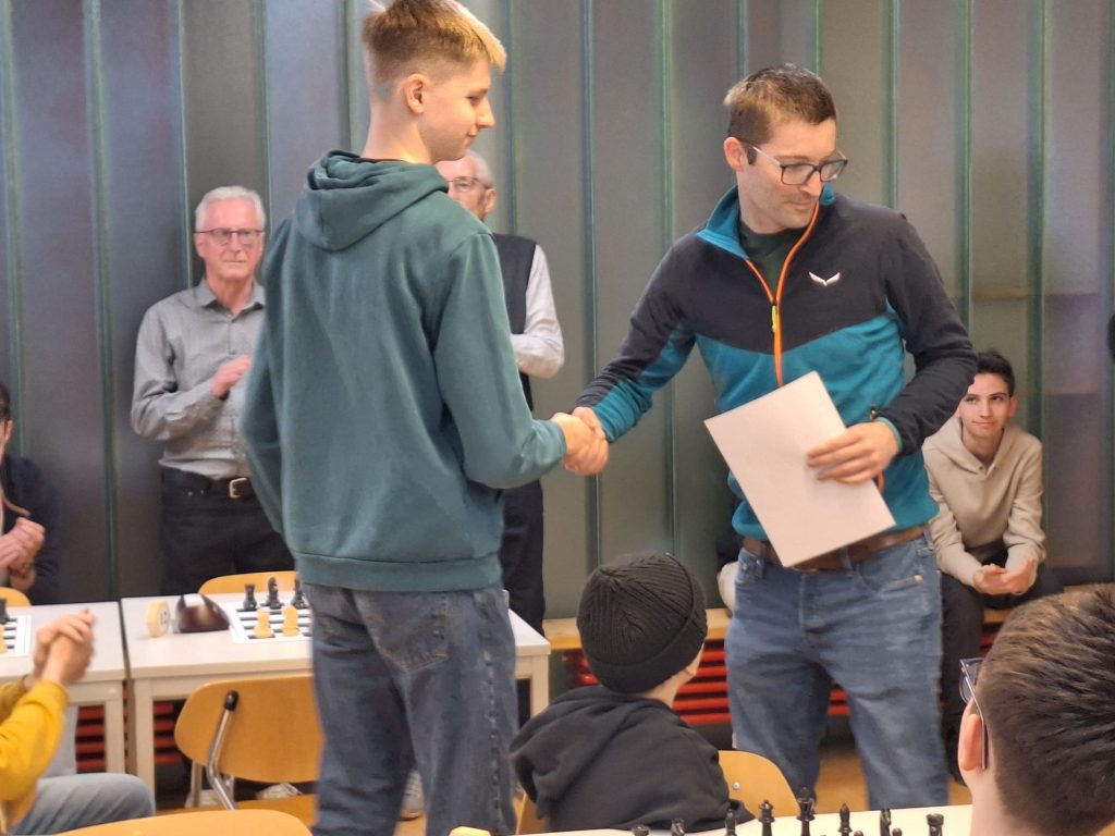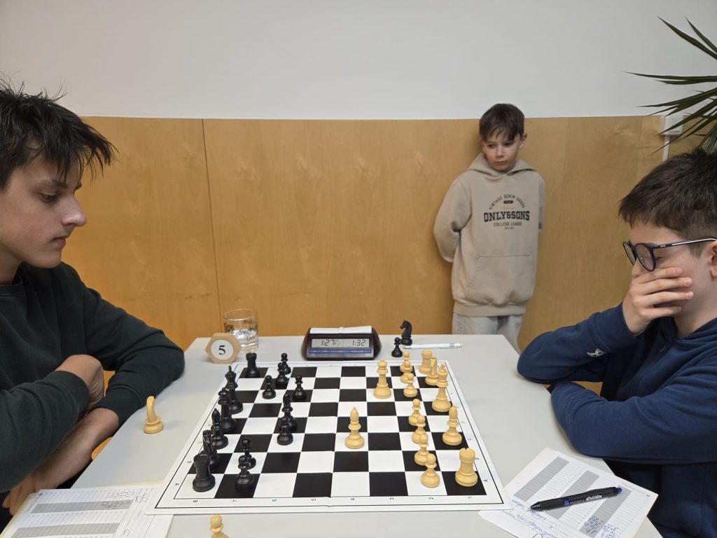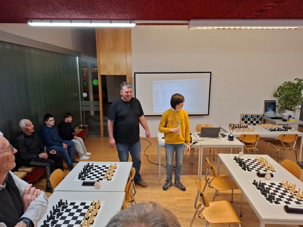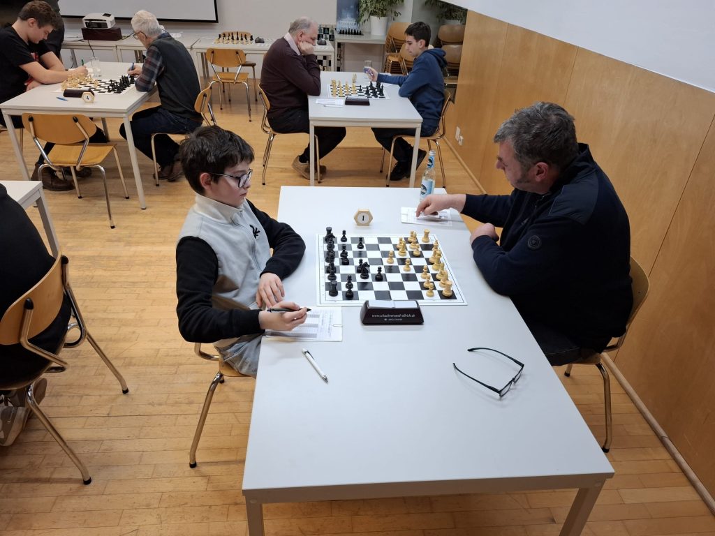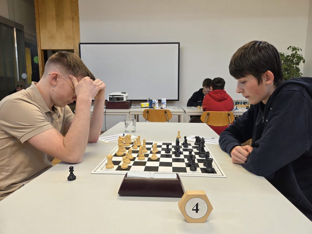 Die zeitmäßig längste Partie der dritten Runde spielten Peter Ranacher und Noah Gasser. Zum Schluss setzte sich das ruhige und konzentrierte Spiel Ranachers durch.
