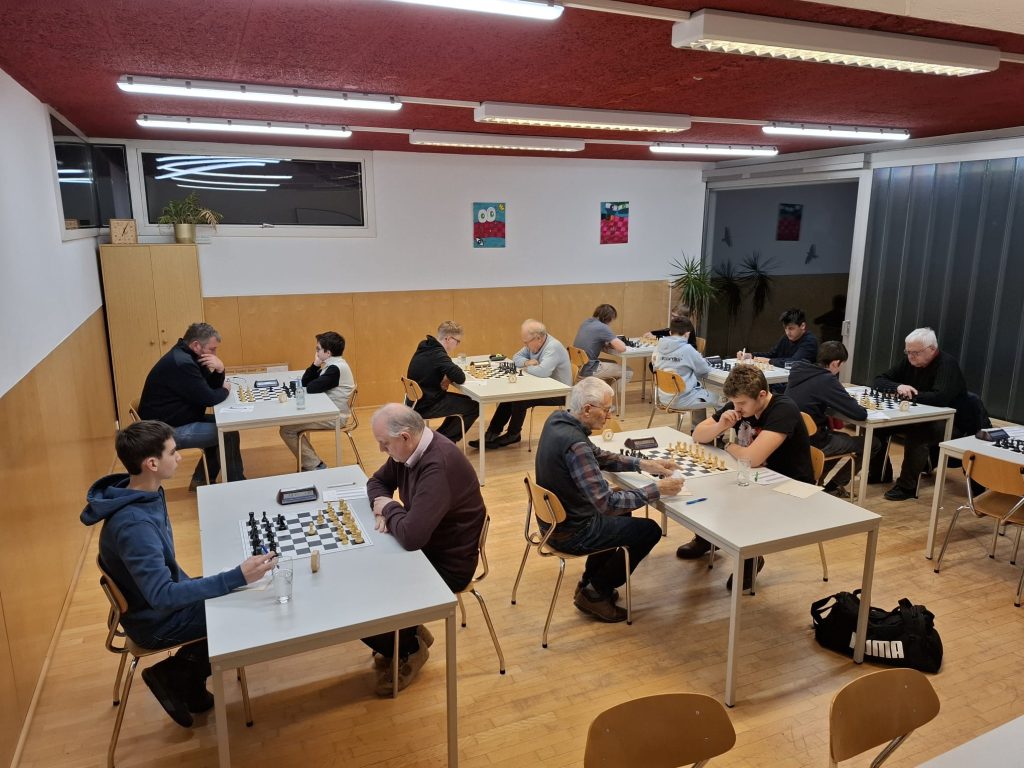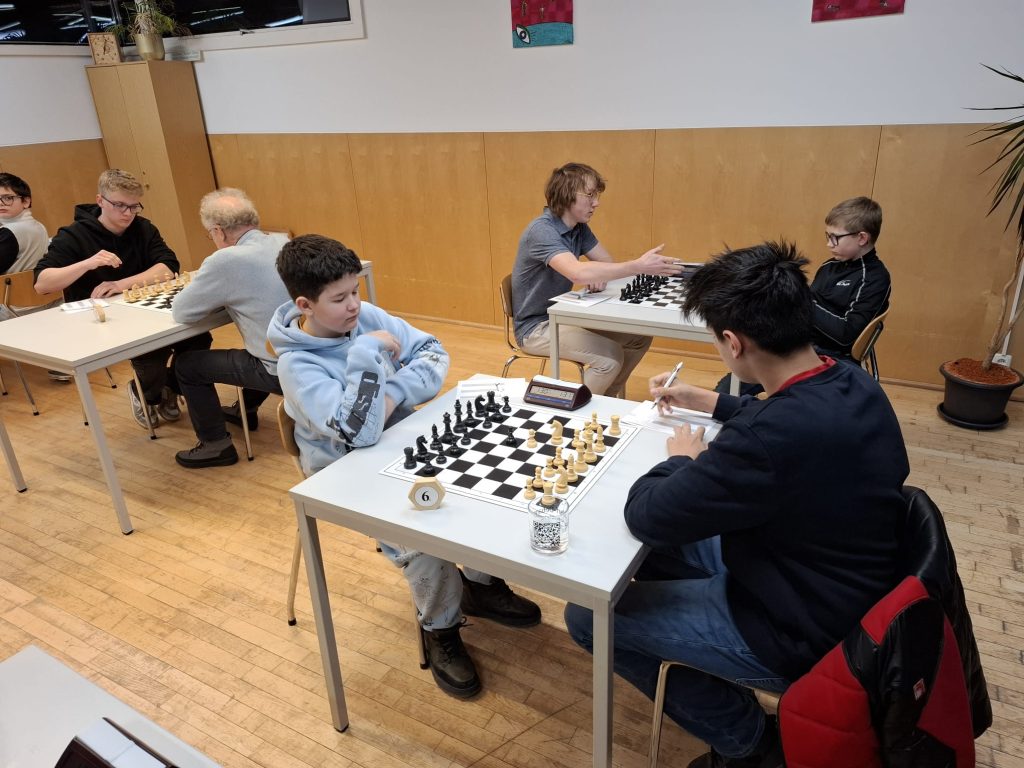 Die Begegnung zwischen Robert Oberbichler und Dr. Gerhard Grubauer endete nach wechselvollem Verlauf mit einem Remis.Im Lienz – internen Stallduell konnte sich Peter Ranacher gegen Alfred Bodner durchsetzen und damit in der Endtabelle den ausgezeichneten zweiten Gesamtrang erreichen.Das Match zwischen Lienz – Obmann Georg Weiler und Christopher Stadler schien lange ausgeglichen zu sein. Schließlich hatte aber Weiler das bessere Ende für sich und erreichte im Gesamtklassement punktegleich mit dem Drittplatzierten Tobias Messner den vierten Rang.Die längste Partie der Runde wechselten Emil Vergeiner und Noah Gasser. Im schließlich entstandenen Endspiel schien Gasser klare Vorteile zu haben, doch wurde nach hartem Kampf und knapp vier Stunden Spielzeit ein Remis unterschrieben.Die Debanter Nachwuchsspieler Simon Stocker und Konstantin Stadler kreuzen regelmäßig unter Wettkampfbedingungen die Klingen. Diesmal war ein Remis das Ergebnis.Dr. Richard Pfaringer überzeugte bei seinem ersten Schachturnier mit vier Siegen und einem Remis. Diesmal hatte Andreas Knapp das Nachsehen.Arnold Zauner kam im Verlauf des Turnieres immer besser in Schwung und besiegte in der Schlussrunde Benjamin Ladstätter.Beide in Denkerpose: Markus Mayerl und Luis Frey. Auch für Markus war es sein erstes „richtiges“ Turnier, doch diesmal hatte er gegen den schon erfahreneren Luis das Nachsehen.Zwei weitere „Newcomer“: Konstantin Fellinger und David Löschnig. Am Ende wird sich diesmal David freuen, und zwar nicht nur über seinen Sieg in dieser Partie, sondern auch über starke vier Punkte in der Endtabelle.
