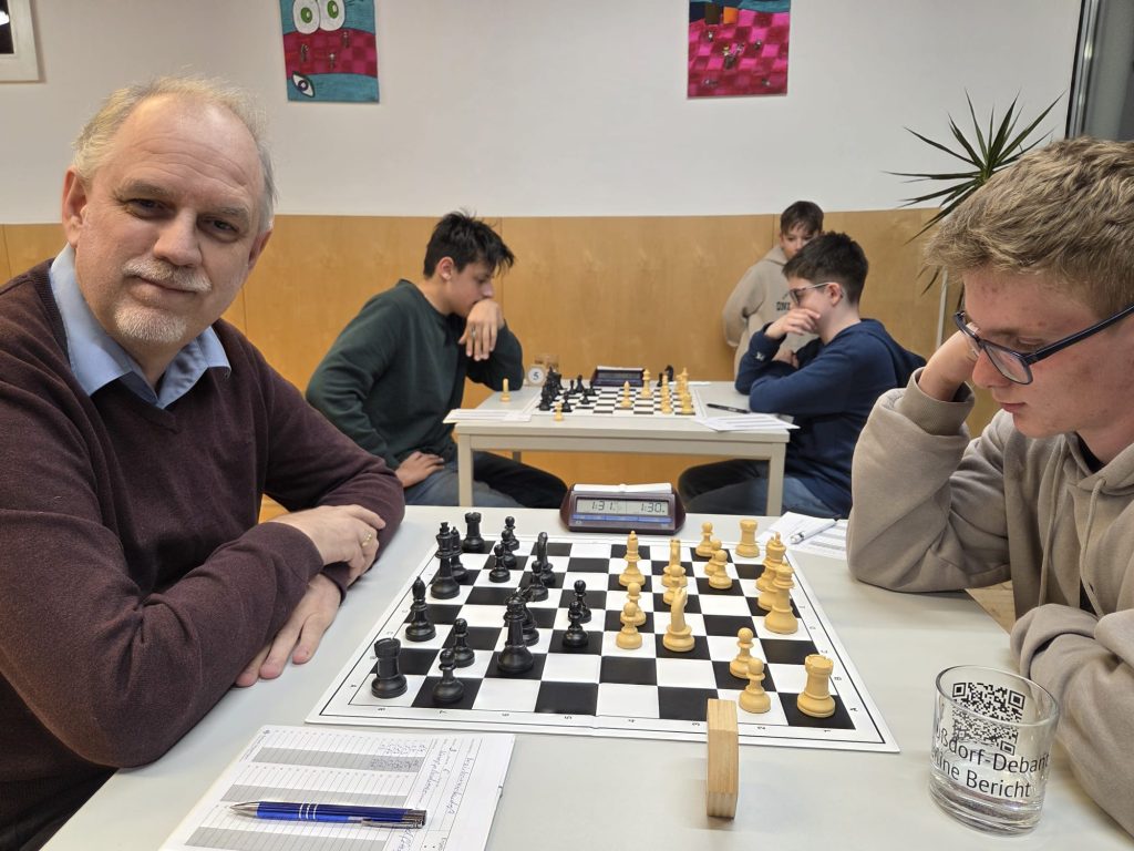 Erfreulich reger Betrieb im Schachklub Debant!Vorne Fellinger – Stadler Christopher, 0-1, hinten Ladstätter – Ranacher, 0-1Vorne Meier – Zauner, 1-0, hinten Messner – Frey, 1-0Vorne Bodner – Gasser, Remis, hinten Stadler Konstantin – Dr. Grubauer, 0-1Vorne Dr. Pfaringer – Sattler, 0-1, hinten Mayerl – Knapp, 0-1Weiler – Löschnig, 1-0Stocker – Oberbichler, 0-1 nach vier Stunden Spielzeit