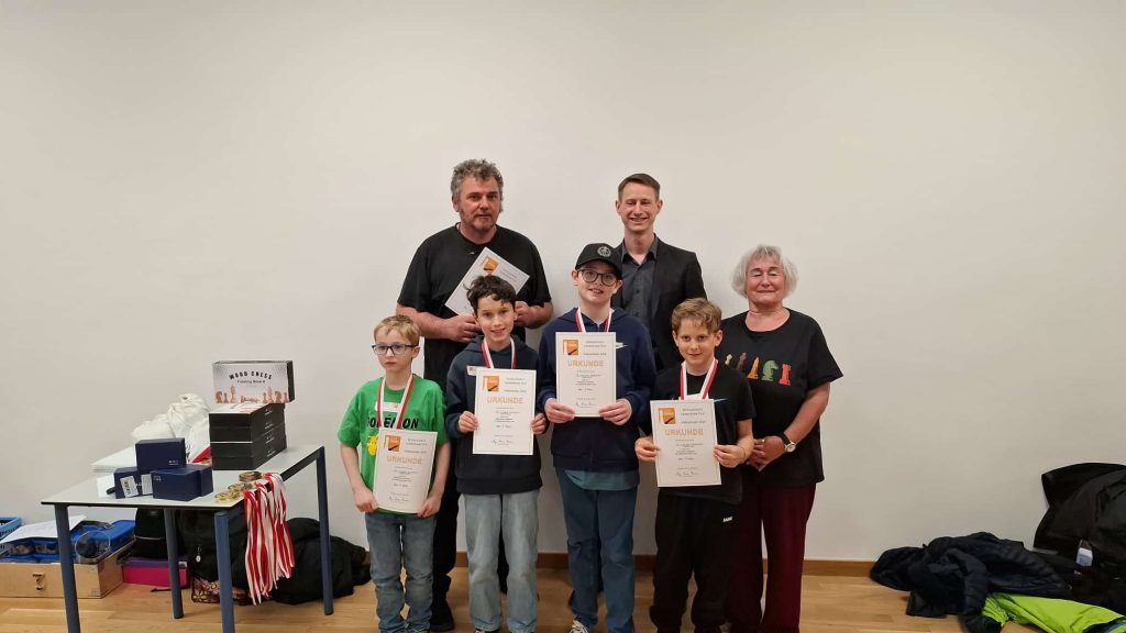 Im Team der Mittelschule Nußdorf – Debant konnten die beiden vorderen Bretter, David Löschnig und Markus Mayerl, ausgezeichnete Leistungen zeigen. David gewann vier von fünf Partien, Markus gar alle fünfe! Die Leistungen auf den Brettern 3 und 4 sind noch ausbaufähig, doch soll nicht unerwähnt bleiben, dass es für Nevio Moser, den Spieler auf Brett 4, sein allererstes Turnier war, und er trotzdem eine Partie gewinnen konnte.