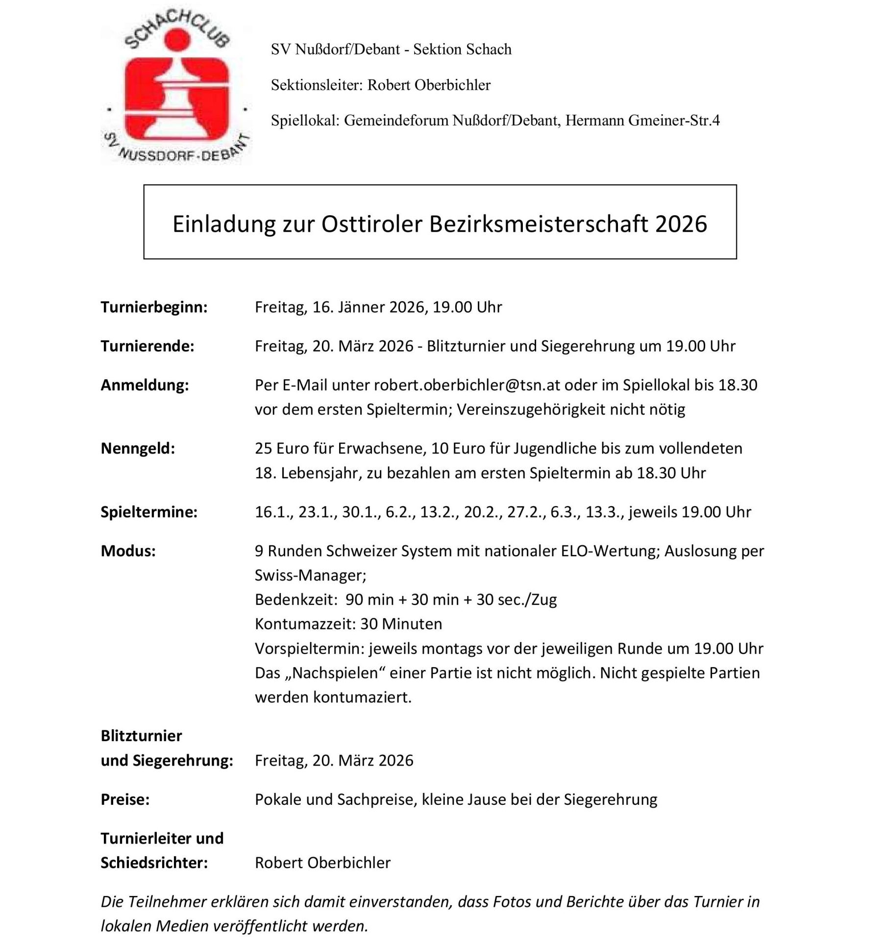 Unser Schachlokal im Gemeindeforum Nußdorf-Debant ist jeweils freitags ab 19 Uhr geöffnet